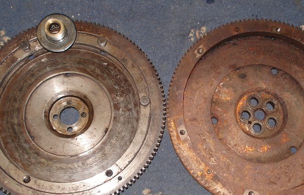 1 : Lightening The Flywheel The First Question To Ask Is "What Does The Flywheel Do?" The Flywheel Primarily Provides A Large Frictional Surface Area For The Clutch To Work Such That Energy Can Be Transferred From The Engine To The GearBox Input Shaft Upon Actuation. The Flywheel Also Provides A Convenient External Surface That Can Be Cog-Wheeled\Geared To Support Engine Starting Via An Electrical Starter Motor. And As Dicussed Above, It Provides An Inertial And Damping Mass To Aid Smooth Running Of The Engine. It Is, Therefore, Very Much A 3-In-1 Peice Of Kit.!! We Weighed Two 200mm Type1 Flywheels, A 200mm Clutch Pack And A 215mm Type4 Flywheel And Clutch Pack : ![]() The Result Was Interesting In-So-Far That The Flywheel/Clutch Combination Of A 1600cc Type1 Engine Is Broadly Speaking The Same Weight As A 2000cc Type4 Engine. On Closer Inspection You Will See That For The Type4, Some Weight Has Been Removed From The Flywheel And Transferred Into The (Bigger) Clutch Assembly Used By The 215mm Flywheel. ![]() As Can Be Seen Above The Ring Of Material That The 200mm Clutch Assembly Bolts On The 200mm Type1 Flywheel Has Been Removed On The 215mm Type4 Flywheel Such That The Larger Clutch Can Be Fitted. ![]() As Can Be Seen Above Extra Material Has Been Added To The Type4 Flywheel Behind The Gear Teeth For The Starter Motor.   The Type1 200mm Flywheel Does Not Have This Material. This Band Of Material Is Perfectly Located For Removal To Lighten The Flywheel : It Is Well Away From The Clutch Friction Faces Such That Flywheel Stiffness Or Heat Sink Zone Is Not Affected.   It Is Also On The Outer Edge Of The Flywheel Where Weight Removal Has The Maximum Effect In Terms Of Moment Of Inertia Effects (Energy Storage). ![]() Our Type 4 Flywheel With The Excess Material Removed. | |||||