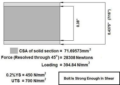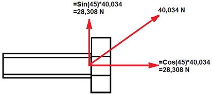 For the purpose of the making the following calculations we have to resolve the input force (at 45 degrees application angle) into a shear loading and a tensile loading component.